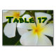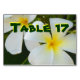 Tropiskt kort för bordsnummer av blommor med plumerior från Hawaii. Söt gult och vita blommar med grönt foliage. Dubblans sidokonstruktion.