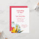 Inbjudan till förnyelse av vigsel med en tropisk bukett av hawaiianska blommor. Modern mörk rosa tryckt text är lätt att anpassa med antal år som man är gift högst upp. Ett extra stycke finns för information om mottagningen, eller använd "mottagning följer", eller ta bort det helt. En bukett av vita plumeria / frangipani, rosa hibiskus och gula paradisfågelsblommor är designen i det nedre hörnet. Baksidan är enfärgat mörk rosa.