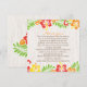 Tropiskt Hawaii-inspirerat inbjudningskort med hibiskusblommor. Röd färg är EE4036, Orange är F6921E och Gul är FFDD15. Vänligen fråga om du vill att vi anpassar färgerna på inbjudan för dig.