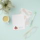 Liten verksamhet eller personligt papper med hawaiianska blommor och ananas design. En vacker samling tropisk natur prydar botten av mycket prisvärd flygbladspapper (välj mellan två typer och tre storlekar). Utryckt grön text längst ned kan innehålla ett företagsnamn (eller personligt namn) och adress. Tomt papper med ett ananas-mönster på baksidan.