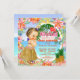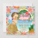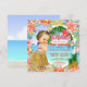 Luau-inbjudan till baby shower med söt liten babyflicka som bär en gräs-hula-rock på en färgrik tropisk strandbakgrund. Du kan enkelt anpassa denna färgrika blomstergala tropiska hawaiianska luau-inbjudan till barnkalas för ditt evenemang genom att helt enkelt lägga till dina detaljer i den teckensnittsstil och färg du väljer. Några grafikbilder ©delightfuldoodles.