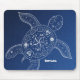 Hawaiisk havssköldpadda Vit på blå strand Tropisk Musdyna. Lägg till text eller låt vara tom.