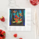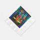 Den här napkin med konstnären, Leslie Sigal Javoreks djärva, konsthungriga digitala målning av en kardad träskulptur av punkterade Anthuriums och Birds of Paridise sitta framför ett briljant blått och svart glasfönster gör en vacker gåva till jul eller när som helst annat!