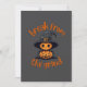 En inbjudan med frasen "Break from the Grind" i feta bokstäver, åtföljd av en grafik av en söt Halloween-pumpa utklädd till häxa, som skapar en festlig och lekfull design.