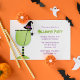 Anpassningsbara Halloween-fest inbjudningar med en tecknad spöke och en kuslig grön drink med en spindel inuti.