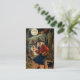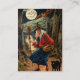 En fantastisk vintageHalloween visitkort som presenterar en häxa som går med henne katten och ugglan till och med en månbelyst natt.