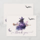 Akvarell-Halloween "denna häxa gifter sig" tackkort för möhippa med lila och orangea blomsterdekorationer. Visar baksidan av en söt häxa som flyger på kvast, perfekt för möhippa, förlovningsfest eller möhippa runt Halloween! För att göra fler ändringar gå till Anpassa denna mall. Längst ner ser du “Vill du anpassa denna design ännu mer? Klicka på REDIGERA med hjälp av designverktyget. Därifrån kan du ändra några av teckensnitten och vissa färger, flytta runt på saker eller ta bort det du behöver. En blandning av generativt innehåll från midjourney och handritade element.