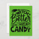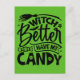 Den här halloweeninspirerade designen har den lekfulla frasen "Witch Better Have My Candy" arrangerad i en dynamisk layout med olika typsnitt. Ordet "Witch" visas i feta, blockiga bokstäver, medan "Better" skrivs i ett kursivt, flödande skrivstil, vilket ger en känsla av brådska och kul till designen. Frasen "Have My" är innesluten i ett banderoll, vilket ytterligare betonar kravet. Ordet "Candy" sticker ut längst ner i stora, blockiga bokstäver, med små skelettillustrationer integrerade i designen. Ytterligare halloween-element, såsom en häxs kvast, en fladdermus, en stjärna och inslagna godisar, är utspridda genom kompositionen, vilket förstärker den kusliga och festliga känslan.