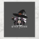 En lekfull och ynklig design med en stilren häxsiluett och texten "Häxa tack" i spöklik, elegant bokstavsform.