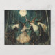 Häxor i den björklunda månbelysta skogen vykort
