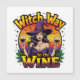 En söt häxa som håller två glas vin och typografi med Häxväg till vinet.