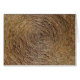 Ett närfoto av slutet på en rund haybale som tryckts på kant av kortet.