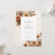 Inbjudan innehåller en sofistikerad layout med mjuk gräddbakgrund. Överst och i grund i kant finns känsliga vattenfärgblommor i varma skuggor av orange, grädde och ram, vilket ger en naturlig och organisk beröring till designen. Den arrangemanga blommigten har en skicklig position för att skapa ett balanserat och harmoniskt utseende, vilket förbättrar inbjudningens förfinade estetik. Det centrala textområdet gränsar till ett tunt, guld ram, ge utformningen av en aning lyx utan att överdriva enkelheten i den övergripande layouten. Texten är inställd i ett klassiskt serif-teckensnitt, som ger en tidlös och snygg perfekt för ett formellt evenemang. Kombinationen av den mjuka paletten färg och elegantens typografi gör denna inbjudan till ett idealiskt val för bröllop med ett romantiskt, höstinspirerat tema. Detta är en perfekt för par att tittar att införliva den vackra höftsäsongen i sitt bröllop-kontor, samtidigt som man behåller en polerad och sofistikerad presentation.