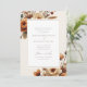 Inbjudan innehåller en sofistikerad layout med mjuk gräddbakgrund. Överst och i grund i kant finns känsliga vattenfärgblommor i varma skuggor av orange, grädde och ram, vilket ger en naturlig och organisk beröring till designen. Den arrangemanga blommigten har en skicklig position för att skapa ett balanserat och harmoniskt utseende, vilket förbättrar inbjudningens förfinade estetik. Det centrala textområdet gränsar till ett tunt, guld ram, ge utformningen av en aning lyx utan att överdriva enkelheten i den övergripande layouten. Texten är inställd i ett klassiskt serif-teckensnitt, som ger en tidlös och snygg perfekt för ett formellt evenemang. Kombinationen av den mjuka paletten färg och elegantens typografi gör denna inbjudan till ett idealiskt val för bröllop med ett romantiskt, höstinspirerat tema. Detta är en perfekt för par att tittar att införliva den vackra höftsäsongen i sitt bröllop-kontor, samtidigt som man behåller en polerad och sofistikerad presentation.