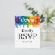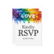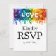 Detta vackra OSA kort av lodrĂ€t ingĂ„r i samlingen Pawarded With KĂ€rlek HBTTQ+ Bröllop. Designat för att komplettera bröllopsinbjudan, har den en pulserande kaskad av regnbĂ„gsinfekterade penseldrag som flödar över toppen. Ord "KÄRLEK" placeras modigt i skarpt vitt brev mot denna fĂ€rgstarka bakgrund. Kortet Ă€r vĂ€l utformat för att göra OSAN processaa lĂ€tt för dina gĂ€ster. PĂ„ framsidan finns en rad dĂ€r de kan skriva namn, följt av kryssrutor för att ange om de kommer att "acceptera med glĂ€dje" eller "beklagligt avböja". Det finns ocksĂ„ ett sĂ€rskilt utrymme dĂ€r du kan ange hur mĂ„nga gĂ€ster som ska nĂ€rvara och en linje dĂ€r de kan informera dig om eventuella speciella kostbehov. Kortets grund innehĂ„ller en QR-kod som gĂ€sterna kan söka igenom för att svara pĂ„ online. Kortets baksida behĂ„llor det enkelt med "OSA av vĂ€nligheten" och tidsfristen för svar som Ă€r tydligt markerad i grund och som garanterar att alla vet nĂ€r de skall svara.