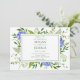 Den här bröllopsinbjudan med vackra, kloka, flerhukade blåa vattenområden och häpnadsväckande grönt och samordnande blåstrimlad baksida är perfekt för vilken trädgård som helst, botanisk, blommigt, romantisk, utomhus, rustik, vintage eller formellt bröllop. Det är ett utmärkt val för vilken vår eller sommarbrud som helst. Gör det enkelt till din egen genom att välja Anpassa den här mallen och skriva in informationen. Om några sekunder visas dina unika och bedövande inbjudningar!
