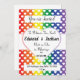 Denna stolthets-tema bröllopsinbjudan är ett färgglatt och unikt sätt att inbjuda familj och vänner till er kommande vigsel. Med en bakgrund i rött, gult, blått, grönt och lila med vita hjärtan ovanpå är det ett ljust och glatt sätt att tillkännage er kärlek. Namn, datum och adresser kan ändras för att passa era detaljer. Det är en verkligt unik inbjudan för det HBTQ-paret.
