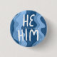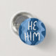 HE/HIM Pronouns, färgstark, handskriven blå Knapp
