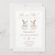 Elegant baby shower invitation featuring two vintage bunnies with soft blue and pink ribbon bows. A classic neutral design with timeless typography, perfect for a spring baby shower or gender reveal celebration. Ideal for a chic, minimal, and refined party theme.