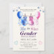 Designed in a charming watercolor style with blue and pink baby booties and balloons, this invitation is perfect for a gender reveal party, baby shower, or family celebration.