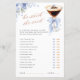 A fun and elegant bridal shower game designed with a refined martini glass illustration, soft blue bow details, and delicate floral accents.