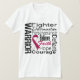 Head & hångla t-skjortor, merchandise & gåvor för cancerkrigaremedvetenhet som presenterar en collage som beskriver attributen av en cancerkrigare. Designen presenterar textattribut av en krigare däribland ordkämpen, beslutsamheten, perseverancen, det tro, tro, hopp, utmana och kurage. Denna design är ordnad i ett kallt bekymrat burgundy och vitband, collagetext med blandat stiltypsnitt som ger en unik väderkorn till designinslag.