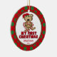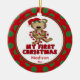 Baby Första julprydnaden har en vacker björn som bär en julhatt som håller ett candy cane-hjärta på en röd och grönt polka prickad bakgrund! Anpassa med din baby-information och ditt datum, så är du redo att gå! En underbar, gammal keepsakigåva till din baby 1:a julklapp.
