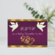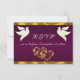 Design features linked hearts and doves on a purple background with ribbon borders, stylish script place holders for the date on the front, and response information on a white pearl back. Perfect for the simple to most elegant wedding. Available in several colors for your wedding theme. (Ribbon is simulated in the artwork). Designed to coordinate with the "Two Shall Become One - Silver & Gold" Wedding Collection. To change details, click «Personalize». To move the text or change the text size, font, or color click «Click to customize further»