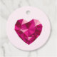 Favor tags with a heart shaped gemstone on light pink background