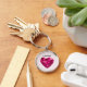 "I love you!" keychain with a pink heart shaped gemstone on light pink background