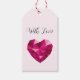 Gift tags with a heart shaped gemstone on light pink background