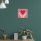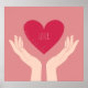 romantisk design av ett starkt rosa hjärta med ord kärlek i mitten och två händer som håller upp hjärtat mot en rosa. Den här vackra, giftiga snyggten är perfekt för valentindagen eller någon flickmadecor.