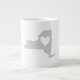 Med konturformen karta av New Yorks Empire state fylld i grått med ett stort hjärta inskuret från mitten är detta Heart New York-kaffe mugg en underbarare påminnelse för kärlek om tillståndet medan hett läcker på morgonen.
