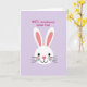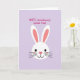 This greeting card features a simple, sweet illustration of a white bunny face centered on a smooth lavender background 🐰. Two long ears stand upright, with soft pink inside that adds a gentle, affectionate touch. The bunny’s round dark eyes and small curved smile give it an inviting look, like it’s gazing at someone it adores. A bright pink, heart-shaped nose sits in the middle, with thin whisker lines and a light rosy blush on the cheeks that suggests shy fondness. In the upper right area, the message “WIFE, somebunny Loves You!” appears in rounded magenta lettering, standing out clearly against the purple. The layout leaves plenty of open space, so the bunny and message feel like a quiet little moment shared between two close hearts 🌷. The ears, nose, and text all repeat the same pink tones, tying the design together. The background stays a single lavender shade, while the bunny’s face remains white with pink accents and dark eyes.