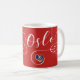 Oslo Heart Flagga Mugg. Vare sig du kommer från Oslo, har bott eller besökt staden eller bara kärlek allt att göra med den vackra norska staden Oslo! Den här snyggten har en skriven design som har stadens flagga Oslo i ett hjärta.