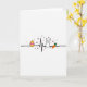 This design shows a simple digital illustration set on a white background, centered around a thin black horizontal line that runs across the card like a gentle heartbeat. Along the line, a striped oval egg in yellow with rosy pink bands sits toward the left, and its tiny facial features give it a sweet, friendly look 🌷. Nearby, a long-eared bunny outline appears in black, leaning into the flow of the line as if following along with a quiet, affectionate curiosity 🐰. Farther to the right, a small orange carrot with leafy green tops adds a cozy garden touch, balancing the softer shapes with something freshly picked. Small hearts in shades of pink and deep maroon float around the main elements, suggesting a tender connection between the spring icons without saying it outright. A few small black cross marks are sprinkled in as accents, echoing the line work and keeping the spacing airy. There is no large headline, but the main “heartbeat” line reads as the focal text-like element, with all the drawings placed along it in black outlines and gentle pastel fills. The final detail is the cluster of tiny hearts scattered above and below the line, with the darkest maroon ones closest to the bunny and carrot.