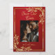 Det här romantiska Spara datumkortet har en platshållare för ett foto på en romantisk krimson röd bakgrund på framsidan och eleganten guld ram. Baksidan har plats för ytterligare information och hjärtmonogram för parets initialer. Designad för samordning med "Doves, Heart & Guld Löv"-samlingen i Bröllop. Om du vill ändra information klickar du på "Anpassa". Om du vill flytta texten eller ändra texten storlekt, teckensnitt eller färg klickar du på "Klicka för att anpassa ytterligare"