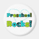 Färgtext i kalkgrönt, svart och akvat lyder "Preschool Sten!" på förskolelärare och student T-tröjor, knappar, tote bags, klistermärken, kort med mera!
