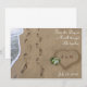 Två spår av fotavtryck, samt ett hjärta ritat i sanden på stranden. Vänligen infoga dina initialer och datum, eller ta bara bort texten.