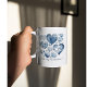 Hjärter i Delft Blue färg, vackert Valentinkort i Delft Blue