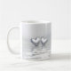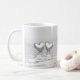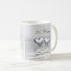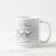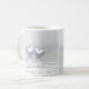 Kaffe mugg med min enkla men söt silver färgad-konst av två silver-hjärtan flytande på vatten. Anpassadet säger "25 år".