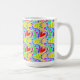 Mugg i en pulserande design med flera färg med röda hjärtan.