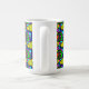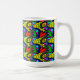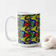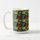 Mugg i en pulserande design med flera färg med röda hjärtan.