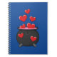 En illustration av en söt tecknad svart kauldron där en häxa skapar en formel för kärlek-fullt av röda hjärtan för valentins dag. Den här fina magiska kärlek-designen är en presentidé för häxkonst och magi älskare och hjärtan i älskare.