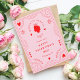 Ett spelkort för vintage inspirerade drottning av Hearts och Alice i underlandets temade design i en ljusröd och ljus rosa färg palett med hjärt- och blomdetaljer.