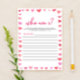 Hearts Who Am I? Bridal Shower Game Brevpapper