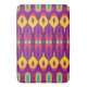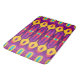Fetstigt färg som teal, lila, gult och rosa upprepar sig i hela designen och skapar ett starkt och livligt utseende med en rytm som känner fullt av rörelse.