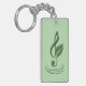 Denna nyckelring har min logo, ett diskantnyckel med ett blad i salvia grönt.