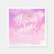 Söt kristen eller ängeltema babyduschar papper napkin med lila, rosa och blå himmel med vita moln och faux guld-stjärnor. I texten står det "Heaven Sent" i handskrivet skript. Det finns en guld-halo ovanför texten. Anpassa den här produkten genom att lägga till din egen babyduschinformation.