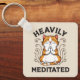 Lustigt Yoga Cat mediterar nyckelkedjan med sloganen "Heavily Meditated"